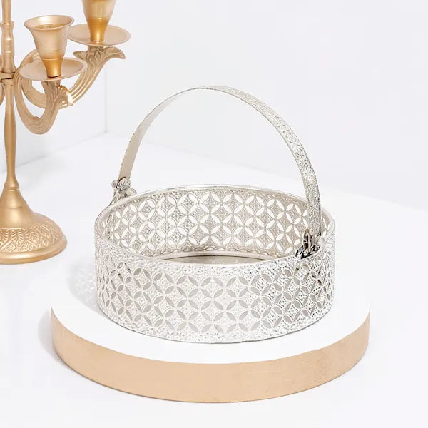 Make this Diwali unforgettable with a hamper that brings warmth, taste, and tradition. The soft glow of two orange metal diyas with tealight candles sets the festive mood, while a peach mandarin candle fills the air with a soothing fragrance. Indulge in Masqa velvety chocolate classic milk and enjoy the salted roasted almonds and berry mix, beautifully packed in an elephant potli. All of this is arranged in a silver-finish metal basket and paired with a heartfelt Diwali greeting card. Personalize the card with your brand logo and gift it to your employees, clients, and business partners.