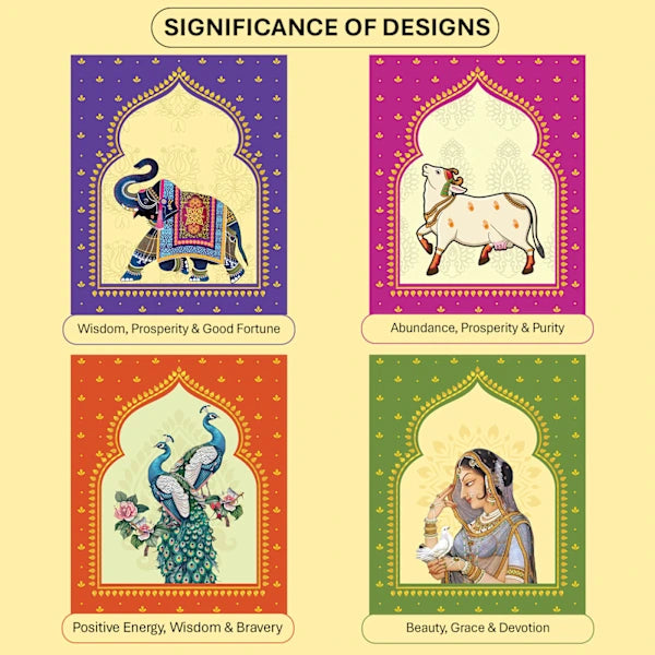 Convey festive warmth and appreciation with this thoughtfully curated Diwali hamper, designed to delight employees, clients, and vendors. Housed in an elegant white box with traditional motifs, it beautifully blends cultural charm with indulgence. Inside, find a striking metal D-shaped rangoli set with six jharokha outer and inner pieces, a jharokha manual, LED tealight candles, glue drops, and a lotus-themed Shubh Labh hanging. Thai Chilli Cashewnuts, Peri Peri Almonds, a floral print potli bag, a tea light candle, and a greeting card complete this sophisticated gesture of goodwill.